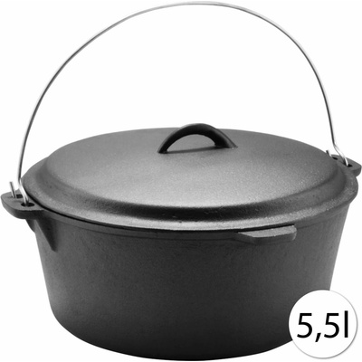Litinový hrnec vhodný nejen pro polní vaření. Masivní těžká litina. Součástí je litinová poklička. - objem cca 5 litrů - sklopné drátové madlo pro přenášení nebo zavěšení -...