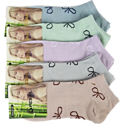 Dámské bambusové kotníkové ponožky Materiál: 95% bambusové vlákno 5% elastan Ponožky jsou dodávány se vzorem dle aktuální skladové zásoby Ilustrační foto