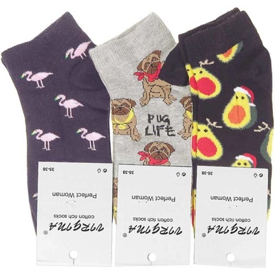 Dámské kotníkové ponožky Zvířátka balení: obsahuje 3 párybarva: tmavomodrá, černá, šedávelikostní čísla: 35 - 38 a 39 - 42materiálové složení: 85% Bavlna, 10% Polyamid, 5%...