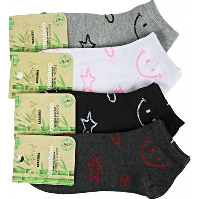 Dámské bambusové kotníkové ponožky Materiál: 95% bambusové vlákno 5% elastan Ponožky jsou dodávány se vzorem dle aktuální skladové zásoby Ilustrační foto