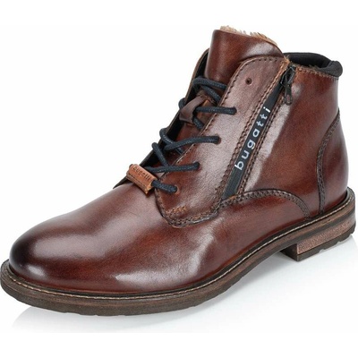 Pánské kotníkové boty Bugatti se šněrováním a postranním zipem pro snadné přezutí. Podešev:Podešev obuvi je s jemným protiskluzovým vzorkem vyrobená ze syntetického materiálu....