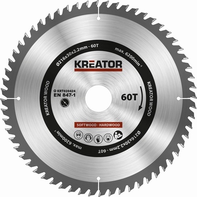 KREATOR KRT020424 Pilový kotouč na dřevo 216mm, 60T