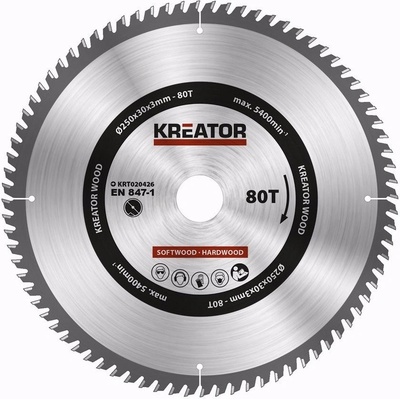 KREATOR KRT020426 Pilový kotouč na dřevo 250mm, 80T