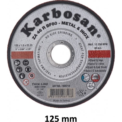 Kotouč pro řezání nerezové oceli Technické parametry: Průměr kotouče: 115 mm Tloušťka : 1,0 mm Upínání: 22,23 mm Celková hmotnost: 50g...