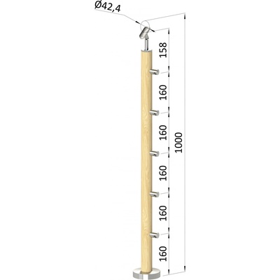 Dřevěný sloup ø42mm vrchní kotvení 5řadový průchozí vrch nastavitelný materiál: buk broušený povrch s nátěrem BORI (bezbarvý)