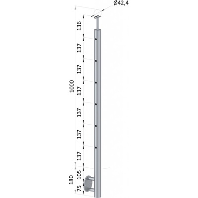 Nerezový sloup ø42,4x2mm vrchní kotvení 4řadový průchozí vrch nastavitelný broušená nerez K320 / AISI316