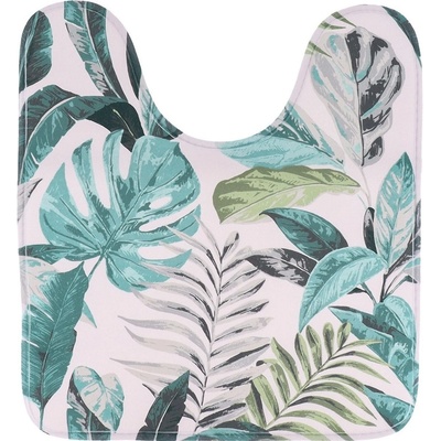 Funkční koupelnová předložka s výřezem pod toaletu má rozměry 45 × 50 cm a vyniká výrazným tropickým vzorem listů v odstínech zelené, tyrkysové a šedé. Praktickému tvaru se...