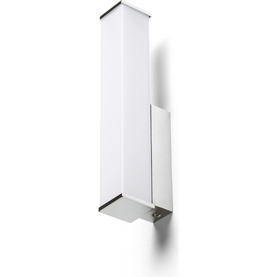 Nástěnné hranaté LED svítidlo s opálovým krytem na chromové základně. Vhodné do vlhkého prostředí.