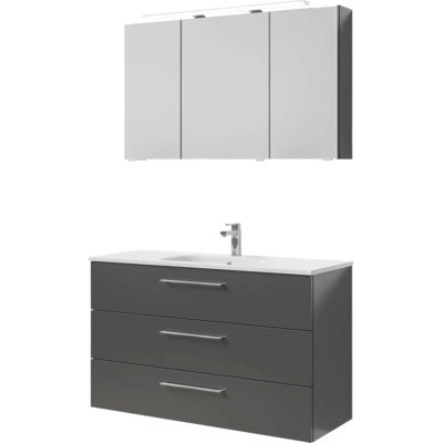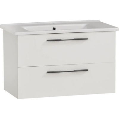 Závěsná koupelnová sestava s keramickým umyvadlem v bílé barvě s fóliovaným povrchem. S plnovýsuvem a dotahem.