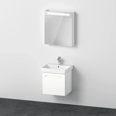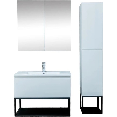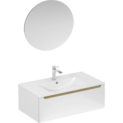 Závěsná koupelnová sestava s keramickým umyvadlem v bílé barvě s lesklým povrchem s fóliovaným povrchem. S plnovýsuvem a dotahem.