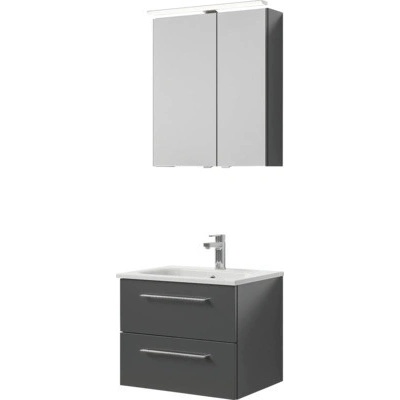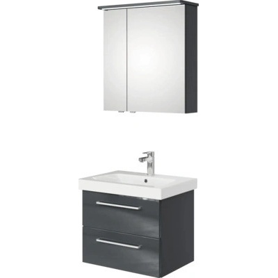 Závěsná koupelnová sestava s keramickým umyvadlem v dekoru akácie s fóliovaným povrchem. S plnovýsuvem a dotahem.