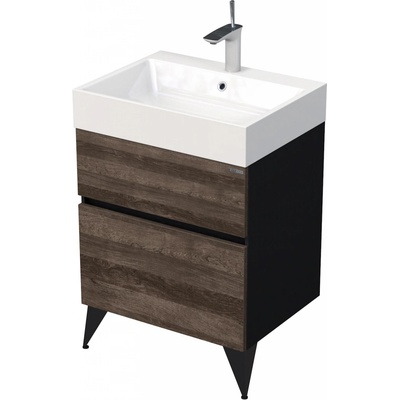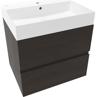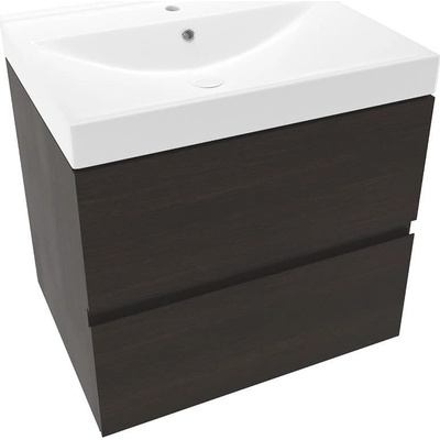 Závěsná koupelnová skříňka s keramickým umyvadlem v barevném provedení tmavé dřevo s matným povrchem o rozměru 60x50x45,5 cm. Povrch v provedení lamino.