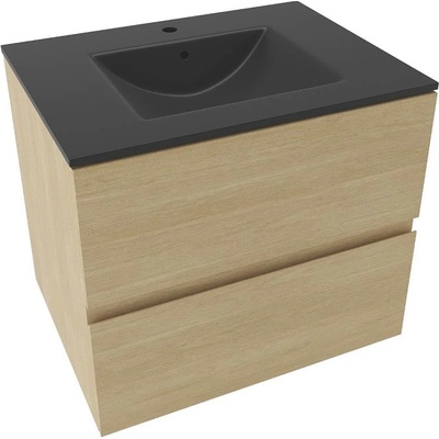 Závěsná koupelnová skříňka s keramickým umyvadlem v dekoru světlé dřevo s matným povrchem o rozměru 60x50x45,5 cm. Povrch v provedení lamino.