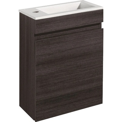 Skříňka s umyvadlem o šíři 46 cm a hloubce 26cm, v dekoru tmavého dřeva. Vhodné pro WC nebo malé prostory. Univerzální verze levá/pravá, otočením umyvadla nebo...