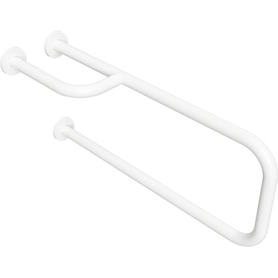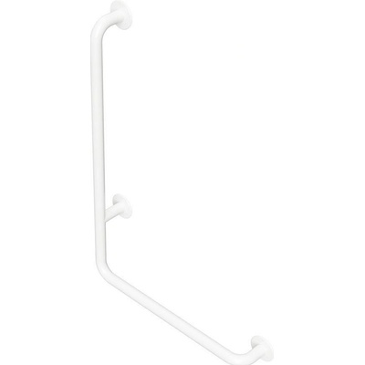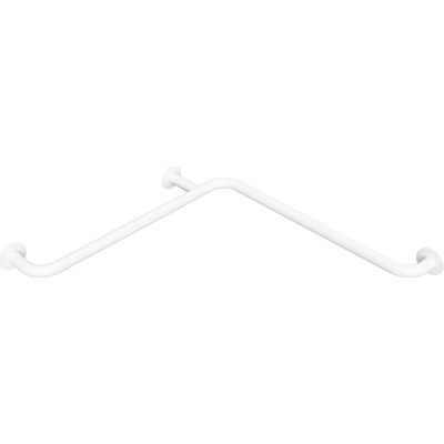 Podpěrné madlo, lomené 120° barva bílá materiál ocel, průměr trubky 32 mm šířka 660 mm výška 400 mm hloubka 106 mm instalace do zdi k uchycení dodávány nerez šrouby podle DIN 95, 6×60 mm s hmoždinkami z plastu pro montáž do plných cihel a betonu pro jiný druh zdiva je...