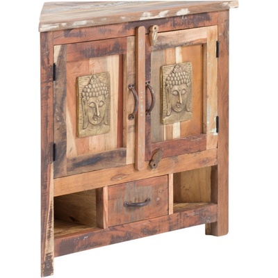 Rohová skříňka do koupelny Gautama Nábytek z řady Gautama je zdoben ručně malovanými dekory a podobiznou Budhy. Vyrábí se z masivního recyklovaného dřeva, které už "lecos...