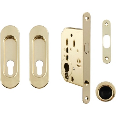 Kvalitní set na posuvné dveře - italské provedení - použití pro posuvné dveře na WC, nebo koupelny - montáž na vruty, které jsou součástí balení - povrchová úprava OLV mosaz...
