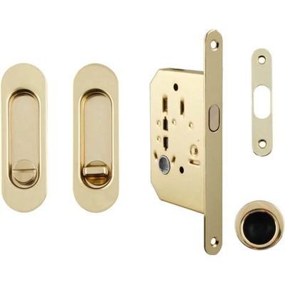 Kvalitní set na posuvné dveře - italské provedení - použití pro posuvné dveře na WC, nebo koupelny - montáž na vruty, které jsou součástí balení - povrchová úprava OLV mosaz...