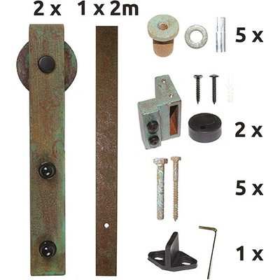 Klasiko - Green patina, Materiál: ocel. Barva: zelená patina. Obsah balení: kolejnice 200 cm - 1ks, vozík - 2ks, doraz - 2ks, spodní vedení - 1ks, spojovací a kotvící materiál....