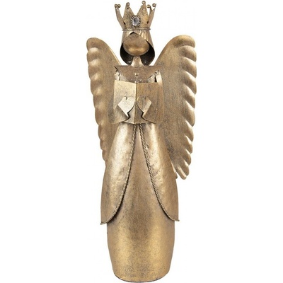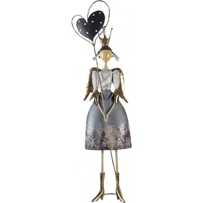Dekorativní kovová soška anděla s křídly, korunkou a velkým srdcem bude zajímavou dekorací ve vánočním období.