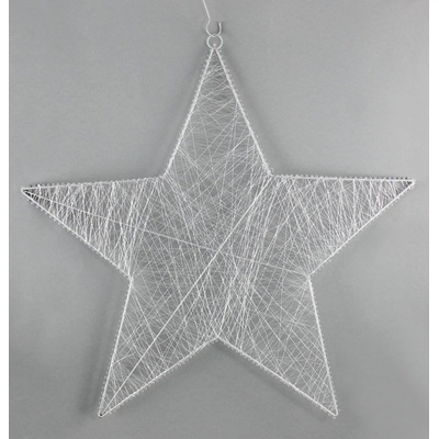Kovová hvězda k zavěšení velká. Rozměry: 15 x 1,5 x 38 / 15 cm. Materiál: kov. Barva: bílá, šedá. Tento výrobek není hračka. Určeno do vnitřních prostor.