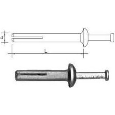Kovová rozevírací hmoždinka do sádrokartonu s ocelovým hřebem pro betonové stropy. Kovová hmoždinka s hřebem pro připevnění závěsů do plných podkladních materiálů. Z...