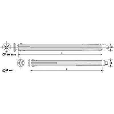 Univerzální talířová hmoždinka - dřík 8mm, kovová zatloukací, podloží A,B,C Délka: 330 mm