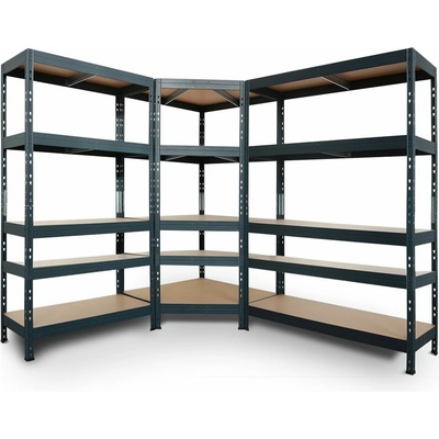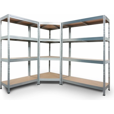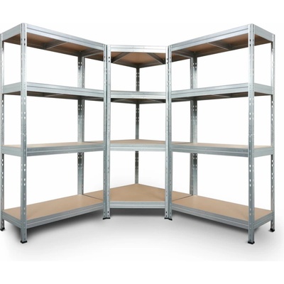Kompletní kovový regálový systém Corner Pack v zinkové povrchové úpravě se skládá z rohového policového regálu o rozměrech 180x90x45x64,5cm se 4 HDF policemi se zátěží 250 kg na...