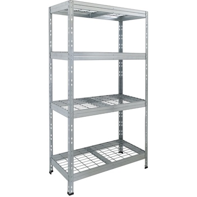 Bezšroubový celokovový regál RIVET 180x120x45 cm (VxŠxH) se 4 síťovými drátěnými policemi se zinkovou povrchovou úpravou je skutečnou revolucí ve skladovém průmyslu. Nový...