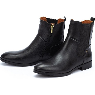 Dámská kotníková obuv, vyrobená z hladké kůže. Vnitřek obuvi tvoří textilní podšívka a komfortní stélka. Snadné nazouvání zajišťují elastické vsadky po obou stranách obuvi. -...