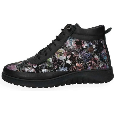 Dámská kotníková obuv, vyrobená z hladké kůže. Vnitřek obuvi tvoří textilní podšívka a komfortní stélka. Snadné nazouvání zajišťuje klasické šněrování a postranní elastické...