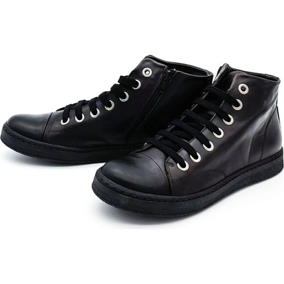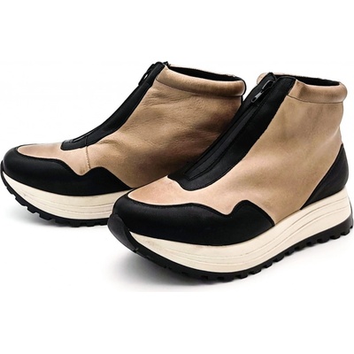 Dámské kotníkové tenisky, vyrobené z hladké kůže. Vnitřek obuvi tvoří textilní podšívka a komfortní stélka. Snadné nazouvání zajišťuje klasické šněrování a zipy po obou...