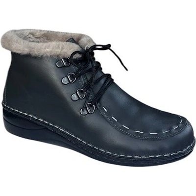 Dámská kotníková obuv, vyrobená ze semišové kůže. Vnitřek obuvi tvoří hřejivá podšívka z mikrofleecu a komfortní vyjímatelná stélka. Obuv je v šíři H - vhodná pro širší...