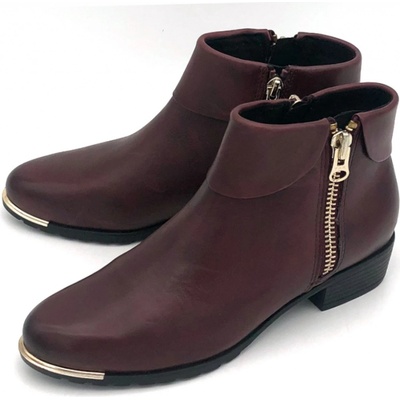 Dámské bordó kožené polobotky/polokozačky s označením šíře "H" - vhodné pro širší nohy nebo vysoký nárt. Díky zapínání na zip se dobře obouvají. Svršek je tvořen z přírodní...