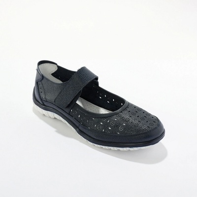 Komfortní obuv s koženou stélkou a perforovaným uzavřeným koženým svrškem.