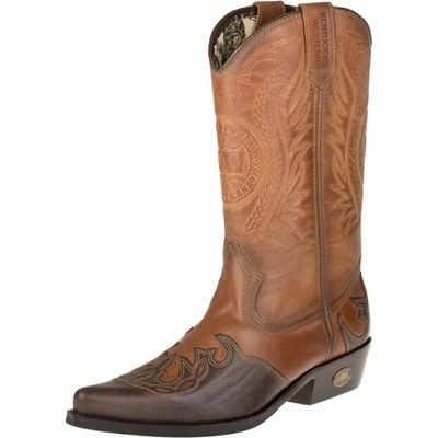Velmi kvalitní celokožená westernová obuv. Svršek hladký, ozdobné našívané dílce v odstínech hnědé v nártové části. V holenní části ozdobné šití a vyrážení. Výška podpatku 4 cm,...