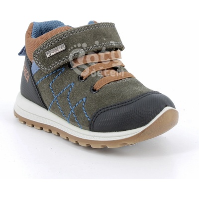 Celoroční kožené boty Primigi s Gore-tex membránou. Moderní barevné provedení, kombinace broušené kůže a syntetiky. Syntetická gumová ochrana v zadní části i na špičce ochrání...