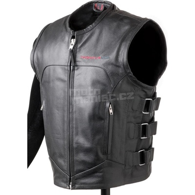 Atraktivní motorkářská vesta z velmi kvalitní prémiové kůže o síle 1.4mm. Vybavena je odnímatelným páteřním chráničem D3O® s CE certifikací. V předu má zapínání a dvě kapsy s...