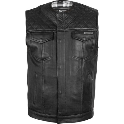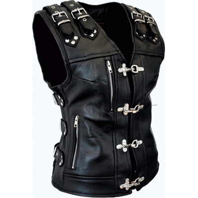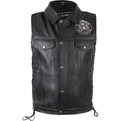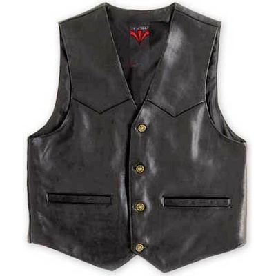 Moto vesta v klasickém stylu, šitá z velmi kvalitní prémiové hovězí kůže. Na přední straně má šest kapes a klasické zapínání na čtyři druky. Vestu můžete ozdobit třeba nášivkou...