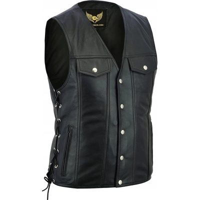 Oblíbená moto vesta se stylovým bočním šněrováním, šitá z velmi kvalitní jemné kůže. Na přední straně jsou dvě klasické kapsy se zapínáním na zip, uvnitř dvě kapsy na druk....