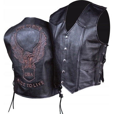 Kvalitní pánská kožená vesta L&J RIDER s orlem Parametry: vysoce kvalitní hovězí kůže 1,2 - 1,4 mm komfortní podšívka z polyesteru dvě vnější a dvě vnitřní kapsy stylové...