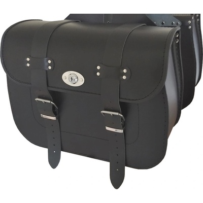 Boční kožené moto brašny, motobrašny na chopper. Brašny na motocykl jsou nezbytným doplňkem pro přepravu zavazadel na motocyklu a zároveň dotváří jeho vzhled. - objem jedné brašny cca 6 l - rozměry: D x V x Š 33 x 32,5 x 12 cm - materiál: tvrzená kůže