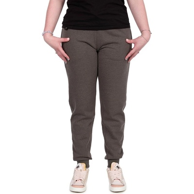 Dámské tepláky s kapsami na zip. Disponují stahovacími šňůrkami v pase a elastickými manžetami. Modelka nosí velikost M. Parametry: Velikost: XL Barva: Hnědá Materiál: 60 %...