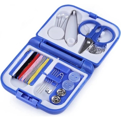 Cestovní šitíčko v praktické plastové krabičce, ideální na cestování. Barva šitíčka - modrá.Velikost: krabička 7x8 cm.Materiál: ocel, plast.