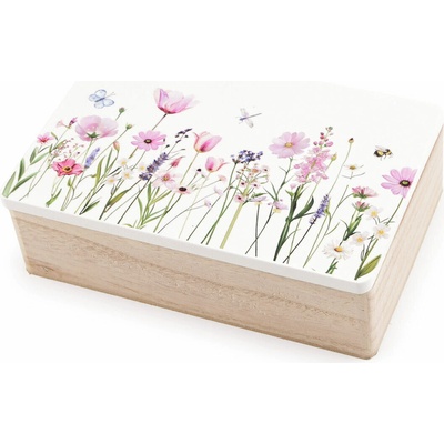 Dřevěná krabička s květinami Krásná dřevěná krabička s květinovým motivem je elegantní a praktická. Krabička do které si můžete schovat nejen šicí potřeby, ale i např....