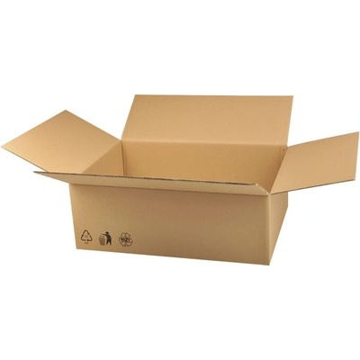 Kartonová krabice z 5-vrstvé lepenky na zásilky o hmotnosti do 20 kg. Spoje na krabici jsou lepené. Krabice jsou rozložené, před použitím je třeba složit a klopy podlepit...