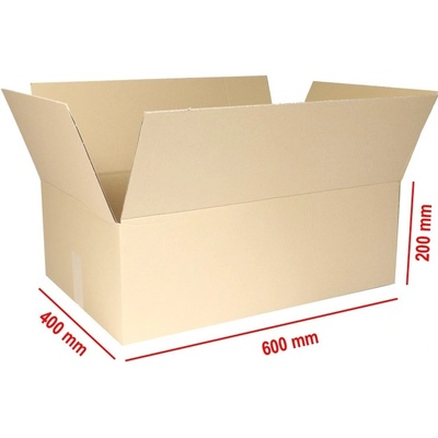 Velmi pevná 5-vrstvá kartonová krabice vhodná k přepravě těžších předmětů. materiál kartonů 5-vrstvá lepenka při prodeji rozložené nosnost minimálně 30 kg vnější rozměr...