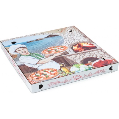 Krabice na pizzu se vyrábí z bílo-hnědé hlazené lepenky s odklápěcím víkem. Tento obal je určen pouze pro sekundární styk s potravinami. - dodáváno v plochém stavu, - ke...
