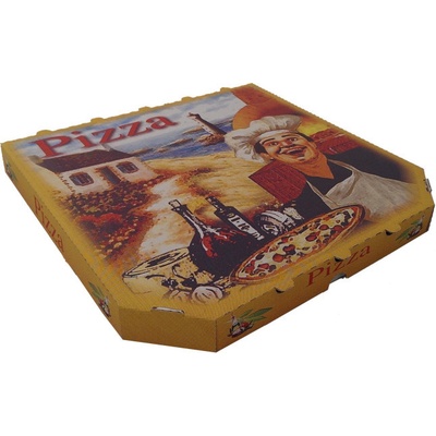 Krabice na pizzu 32 x 32 x 3 cm potisk - z vlnité lepenky / oblé hrany / 72032