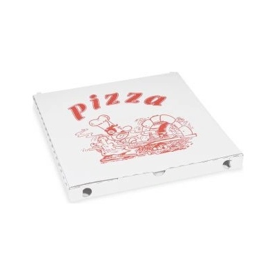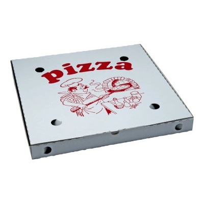 Pizza krabice (krabice na pizzu)Krabice na pizzu 33x33x3 cm ideal pack® z mikrovlnné lepenky v provedení bílá/bílá s dvoubarevným potiskem kuchař.Ideální obal pro balení a...